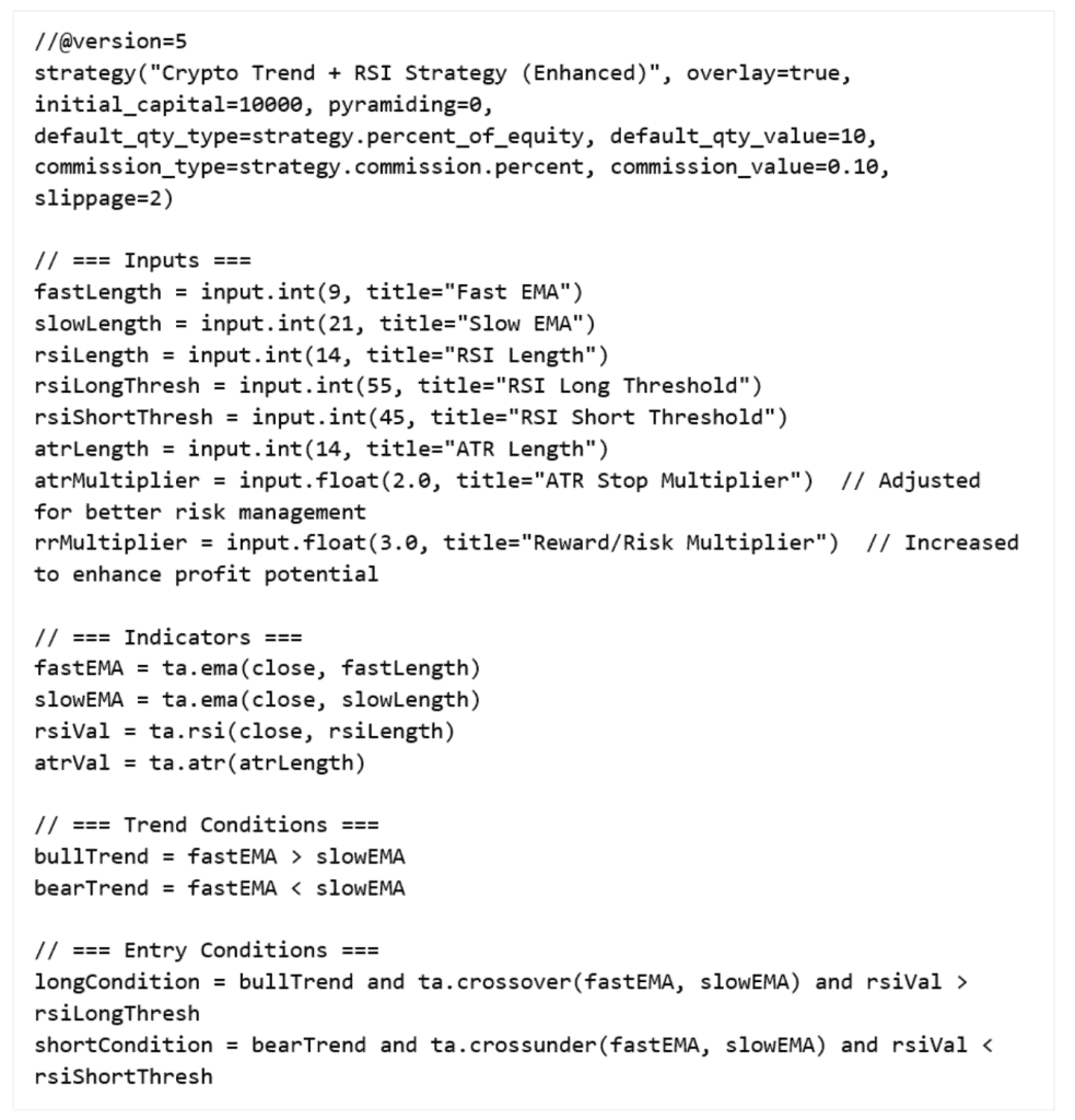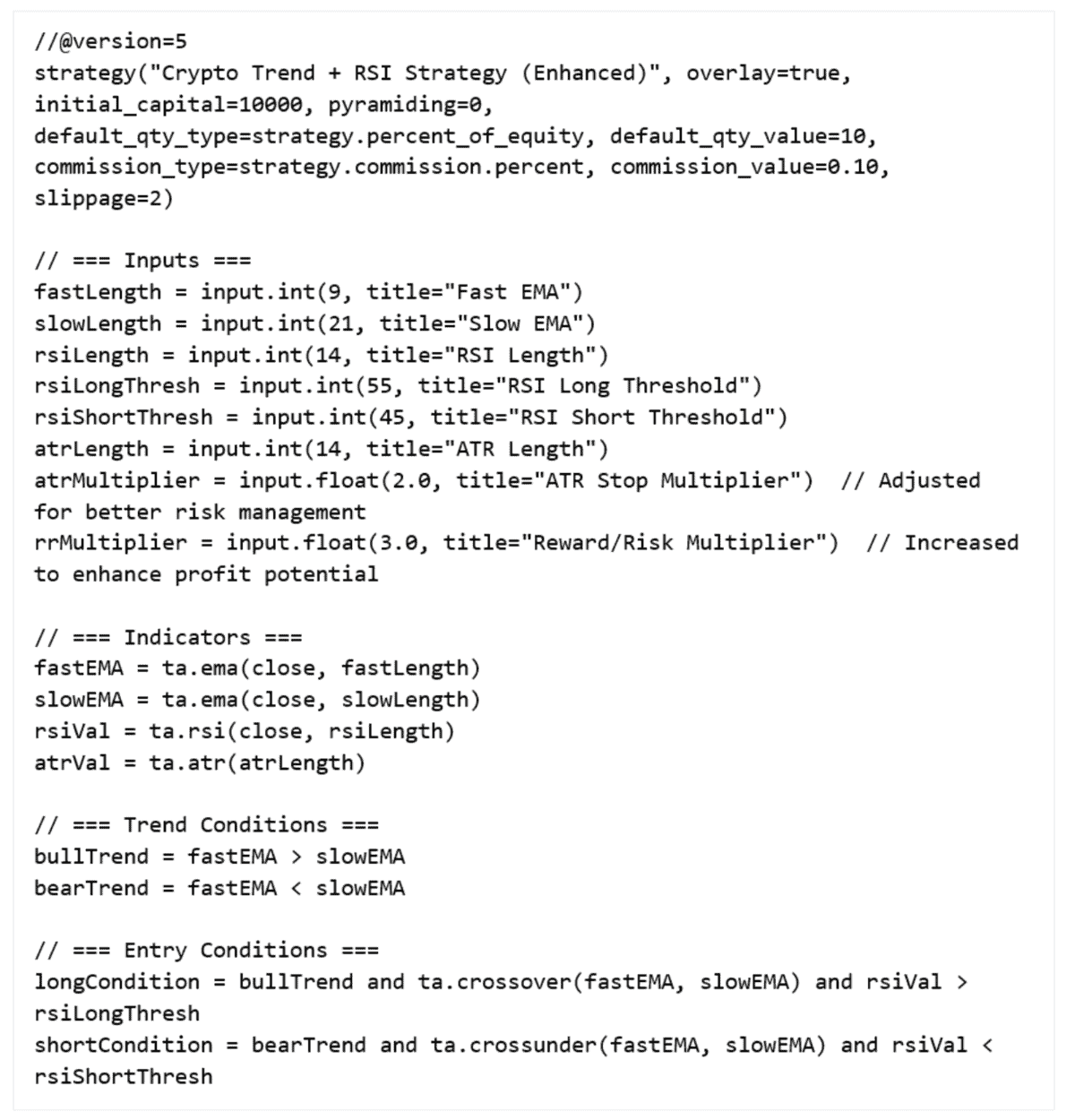 This example reflects a common approach — combining indicators with entry, exit and basic