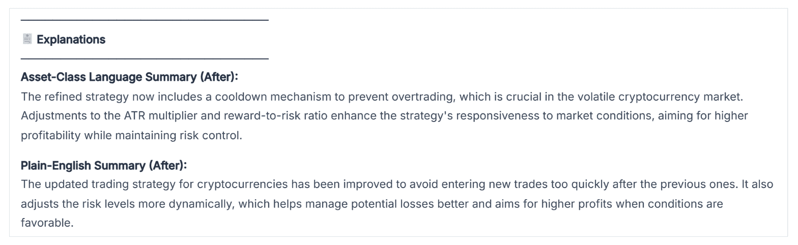 Watch a short demonstration showing how a trading script is evaluated and refined: